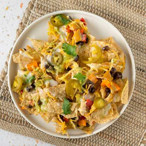 Veggie potato nachos are a tasty twist on traditional nachos.