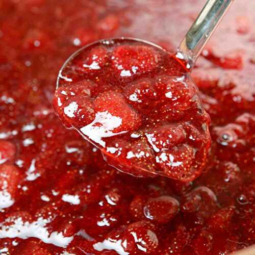 Homemade strawberry compote, also known as strawberry topping or sauce, is an easy recipe made in only 15 minutes! Enjoy this sauce on top of waffles, pancakes, ice cream, cake, and so much more!