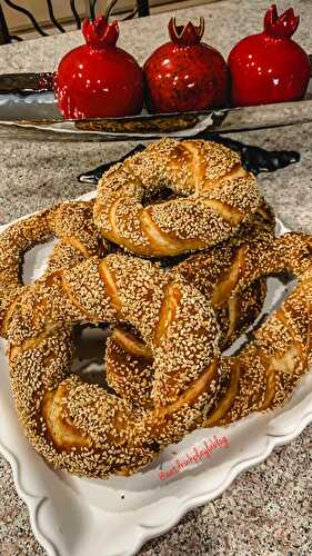 Simit Bread (Turkish sesame bread) is a circular bread, typically encrusted with sesame seeds.