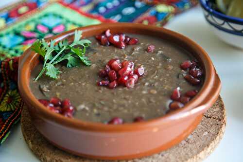 Rummaniyeh, a lentil stew that combines sweet and sour flavors.