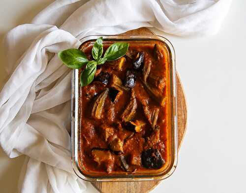 Melanzane in Potacchio (Eggplant stew) is a simple but surprisingly tasty recipe from the Marche region in Italy.