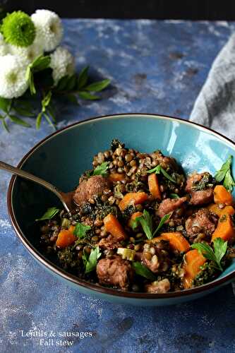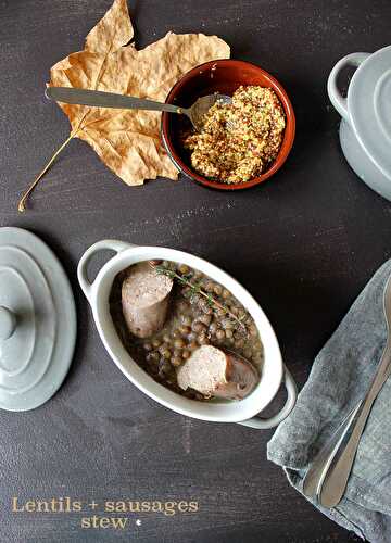 Temps are not very low for an October, quite the contrary actually but I am craving cozy and comfort food anyway so that is what I am making! Here, I made a delicious lentils and sausages stew, nothing simpler but it’s flavorful and everyone licks their.