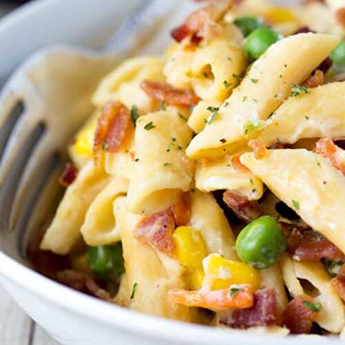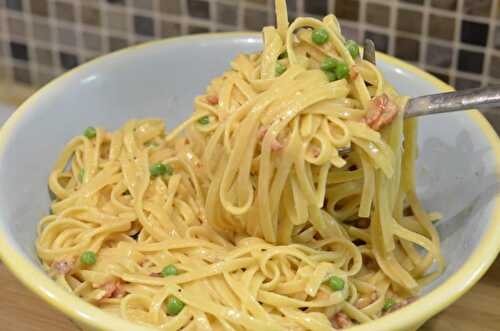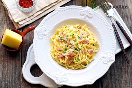 Recipe Pasta carbonara express instant pot - If you like carbonara pasta style of food and you are in a hurry, you could try that simple and quick preparation of pasta with cream, bacon and parmesan cheese on top.