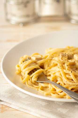 This vegan spaghetti carbonara is meat, dairy and egg-free, but still just as tasty, creamy and quick to make.