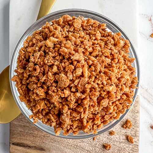 Serve Vegan Bacon Bits with your meals to add smoky, savory, crunchy bites and extra protein.