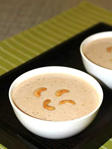 The main ingredients of cherupayar parippu payasam are skinned split green gram, jaggery, and coconut milk.
