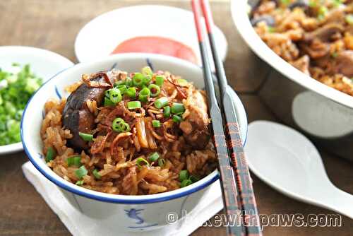 Steamed chicken and mushroom rice, nasi tim ayam jamur, indonesian food, nasi tim ayam
