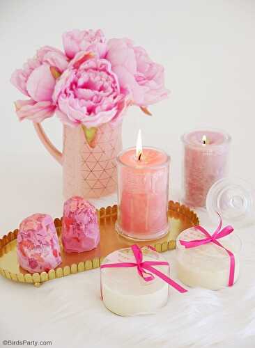 DIY Spa Pampering Kit With Four Recipes - For you or to gift! Gemstone Soap, Scented Glitter Candles and Vegan Body Scrub and Butter.
