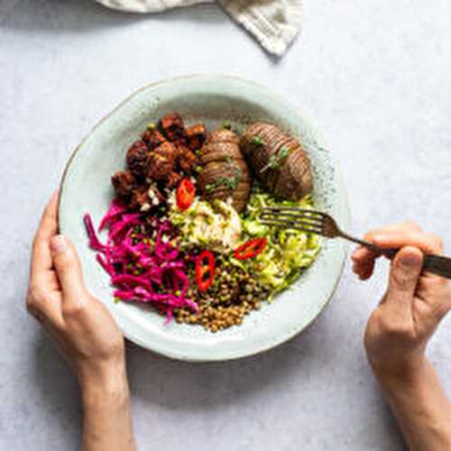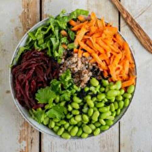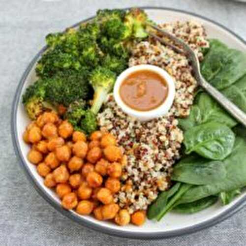 Learn how to make a balanced and low glycemic vegan Buddha bowl for a quick and easy lunch or dinner.