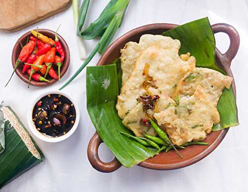 Tempe mendoan is a fried battered tempeh that is made from the thin and wide shape of tempeh.