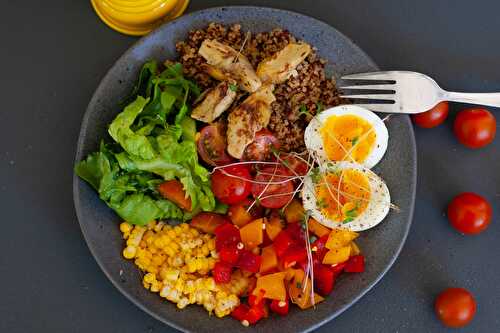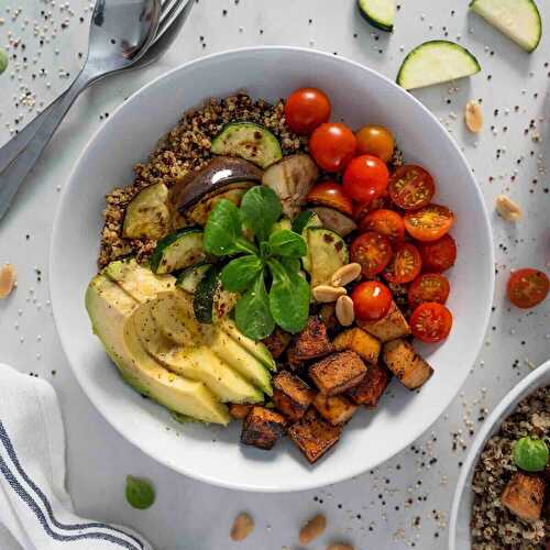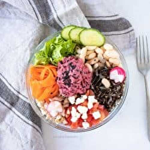 A balanced, healthy and nutritious bowl filled with lots of veggies, different types of protein and whole natural grains, a mix of flavors that will fill your body and heart, a meal easy to have on-the-go and a recipe that you need to add to your Batch.