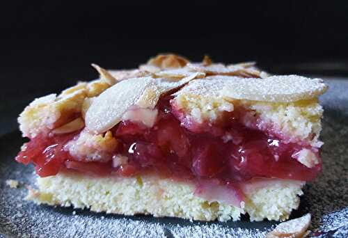 Sweet Cherry Cookie Squares from Scratch : perfect sweet cherry filling made from scratch between two layers of cookie dough, sprinkled with sliced almonds !