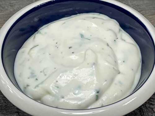 This yogurt ranch dressing starts with some plain yogurt and some dried spices you probably already have.