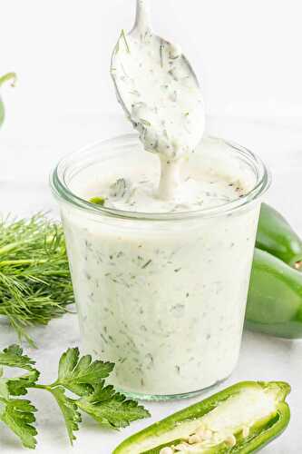 Made with fresh herbs and roasted jalapeños, this easy ranch dressing is perfect on salads or as a dipping sauce.
