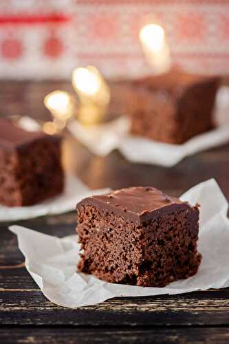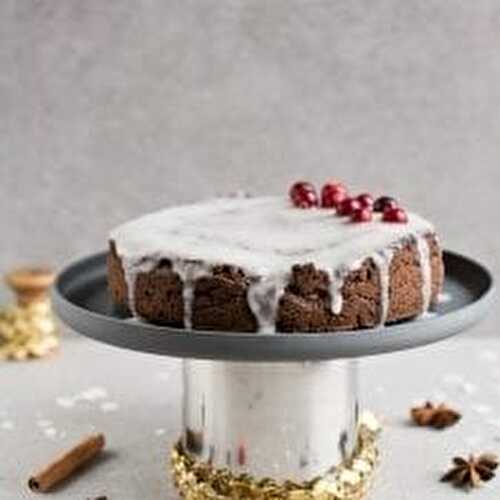 Vegan chocolate Lebkuchen cake - German gingerbread cake with chocolate glaze.
