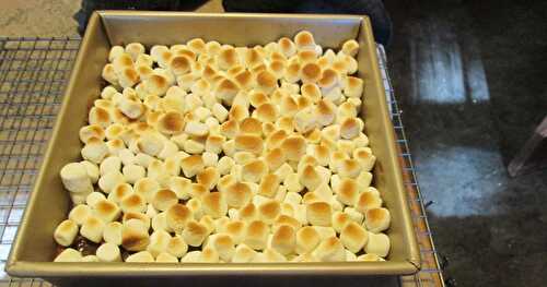 So to start this marshmallow fantasy, whip up these easy one bowl scratch brownies for starters! Then add some sweet fluffy marshmallow cream with some mini marshmallows are used for the thick marshmallow layer and then it's covered with the most yummy.