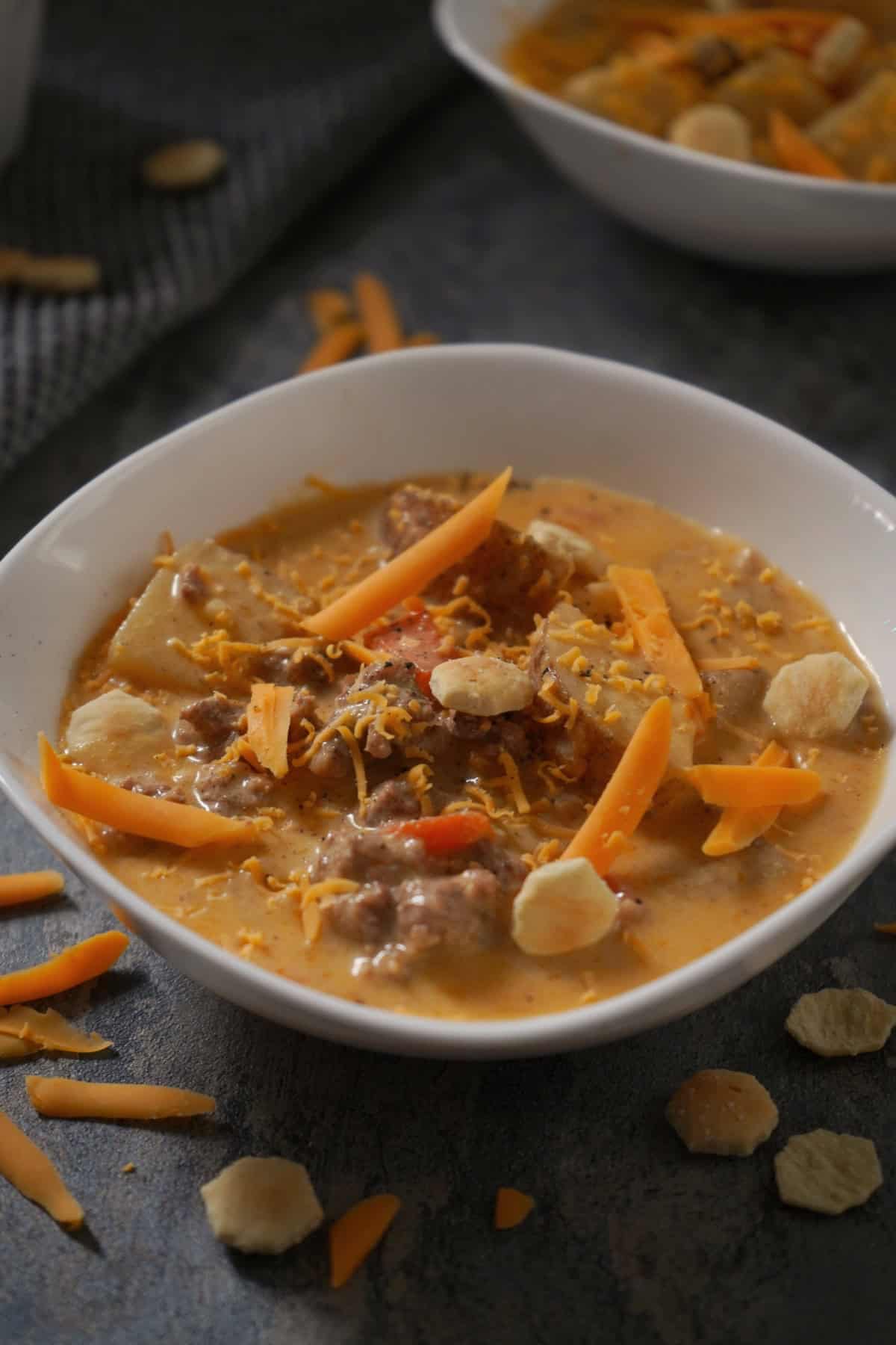 Raise your hand if you love crockpot meals!!! Dumping ingredients in your slow cooker in the morning and having to worry about what's for dinner later is the best! This hearty soup with tender beef and favorite vegetables makes an easy meal for busy.