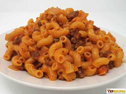 A spicy chili mac recipe made with chorizo sausage that's easy and ready in 30 minutes.
