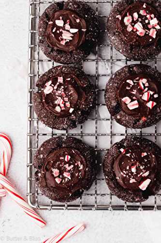 Chocolate Peppermint Thumbprint Cookies are soft and tender chocolate sugar cookies filled with a smooth and creamy peppermint ganache.