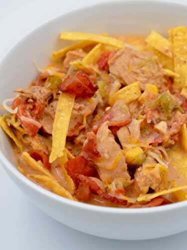 This low calorie red chicken chili with tomatoes teams chicken with chili con carne ingredients for a great meal with rice or cornbread.