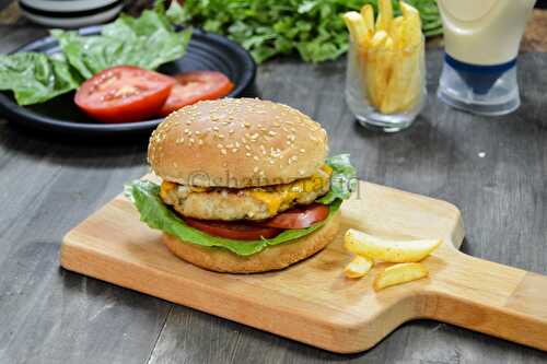 Chili Chicken Burger is a spicy preparation where the chicken mince is combined with spices formed into patty, cooked on each side and served hot with fresh salad and bun.