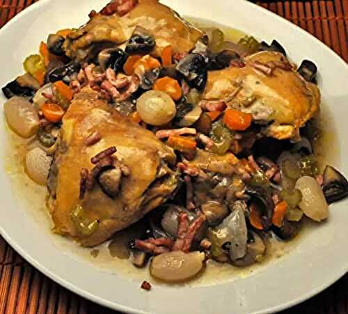 Coq au Vin Blanc, the Slow Cooker Version, Chicken braised in red wine is a French classic.