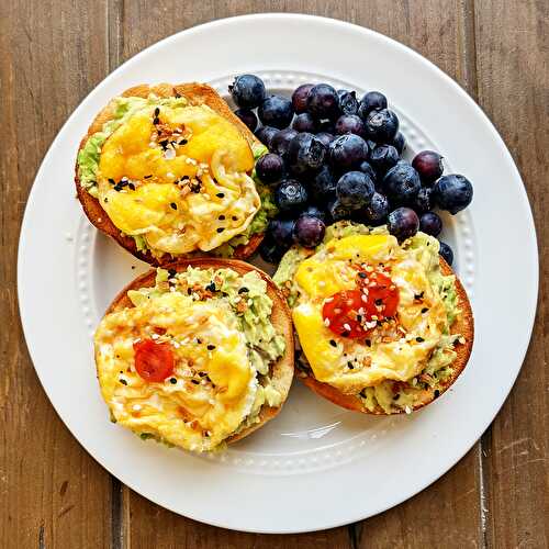 Top your favorite low calorie mini bagel with these delicious egg white muffins, and avocado!