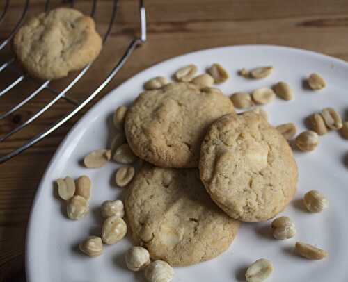 Deeply satisfying and perfect textured peanut butter, hazelnut and white chocolate cookies