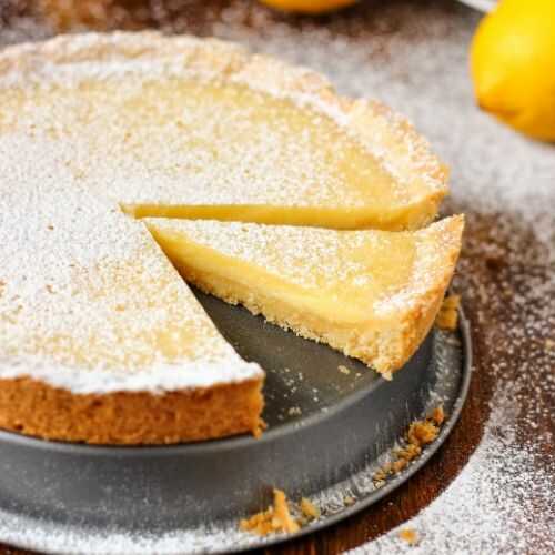 A crunchy par-baked shortbread pastry shell is filled with a creamy, lemon custard.