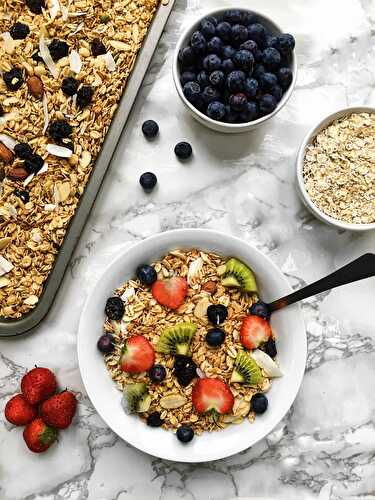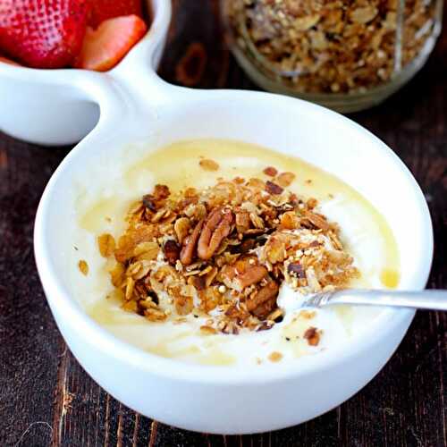 Healthy, vegan, refined sugar-free homemade granola with all your favourite nuts and seeds.