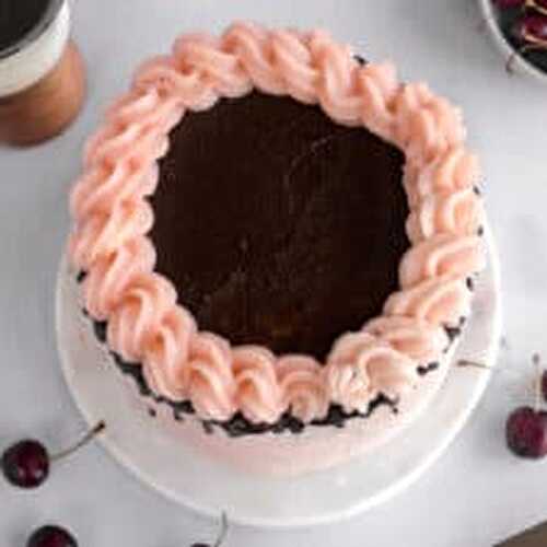 This cherry devil's food cake is a two layer chocolate cake filled with homemade cherry jam in between and frosted with cherry buttercream along with a smooth, silky & decadent chocolate ganache.