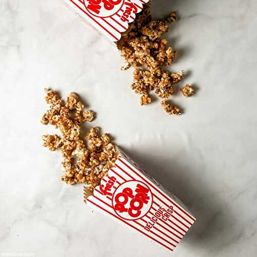 Buffalo popcorn takes same-old caramel corn up several notches! Sweet, salty, spicy and tangy, this is the best popcorn ever!