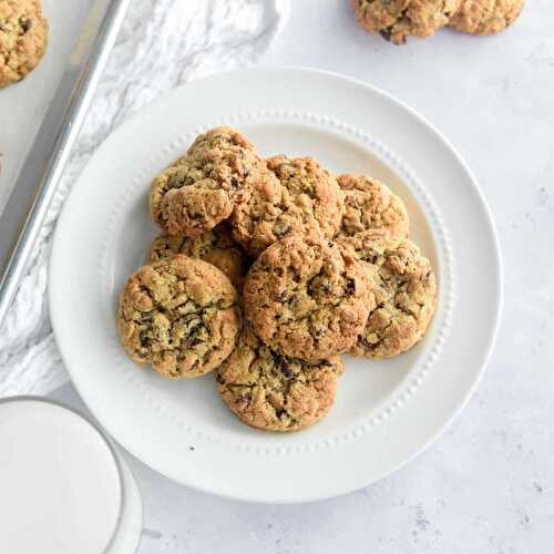 These peanut butter pretzel oatmeal cookies with chocolate are like a cookie version of a really good granola bar! Perfect for an after school snack or dessert!