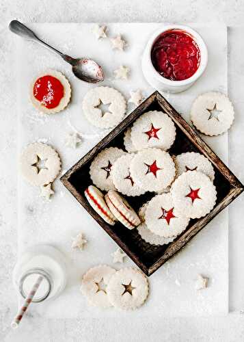 The classic linzer cookies flavored with a touch of sweet almond and filled with a sweet and tart raspberry jam
