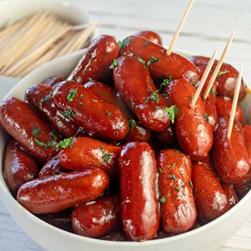 These 2 ingredient BBQ Little Smokies are a quick and easy appetizer perfect for game day or whenever you need to feed a crowd! Your favorite BBQ sauce and a package of cocktail weenies is all you need for this savory, flavorful snack!