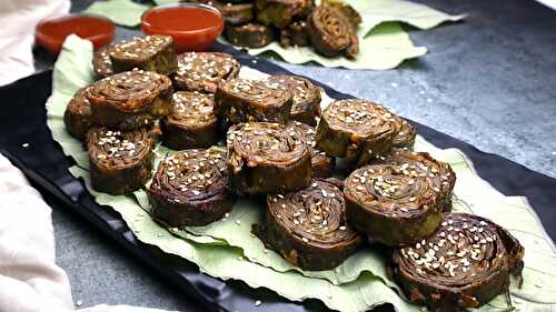 Patra is a fried snack of arbi leaves from the Gujarati cuisine.