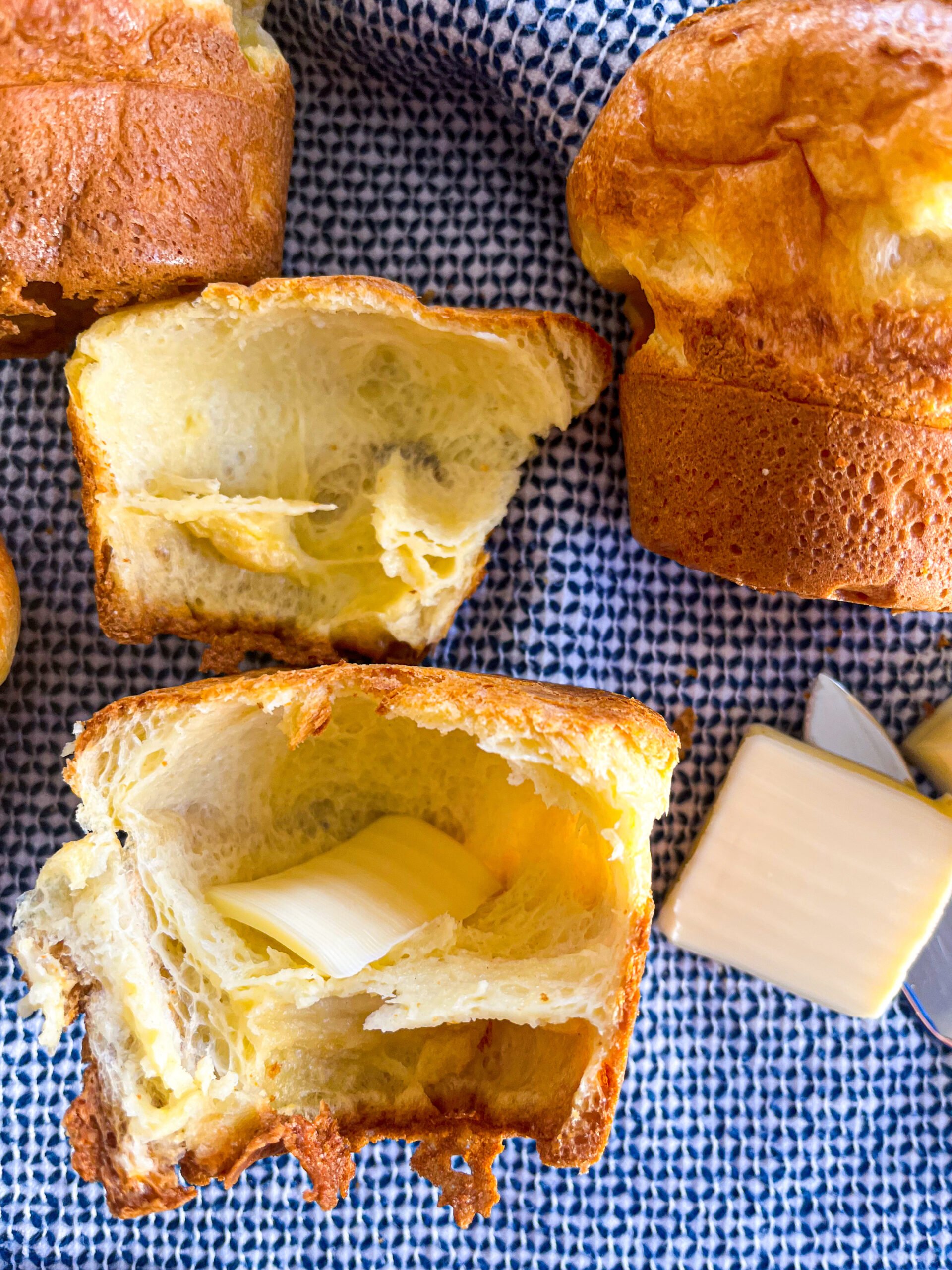 Delicious little bites of fresh, warm, slightly eggy popover muffins bursting with bleu cheese goodness, these appetizers will win over any crowd.
