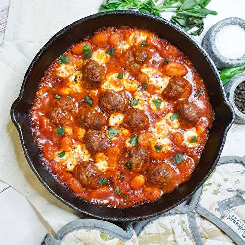 Gnocchi and Meatball Bake Recipe: Ready in under 30 minutes, this meatball bake with fried gnocchi is the perfect midweek meal!