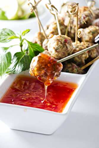 Serve these Asian meatballs with sweet chili sauce over iceberg lettuce for a delicious low carb snack or meal.