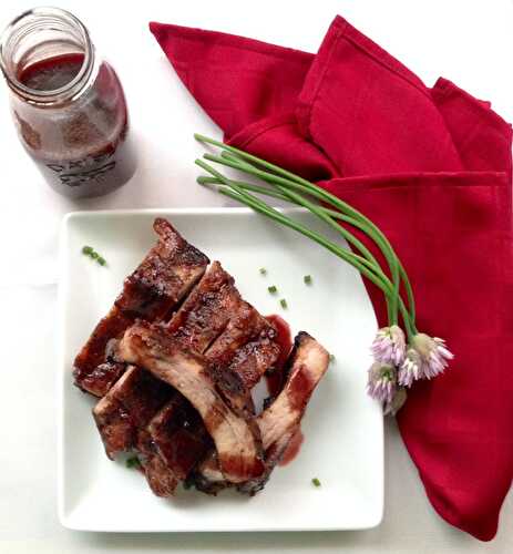 Raspberry Chipotle BBQ Pork Ribs! Big, meaty pork ribs are seasoned with a cry chipotle rub and sauced with our roasted raspberry chipotle sauce.