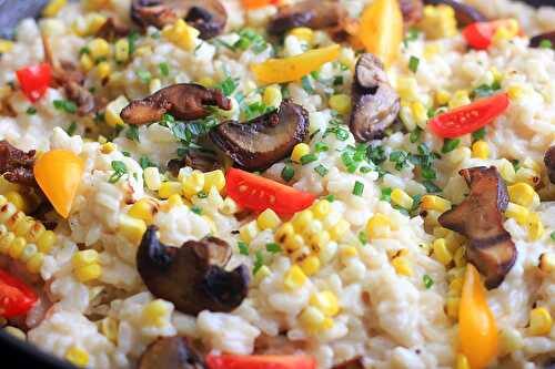 This roasted corn risotto with smoked paprika is a hugely flavourful vegetarian main course, perfect for your next dinner party!