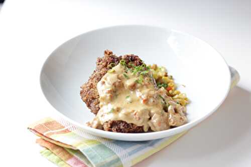 The Ultimate in comfort food - Alton's chicken fried steak smothered in gravy: what could be more classic? This steak is fried to golden perfection and topped with the creamiest gravy you can imagine.