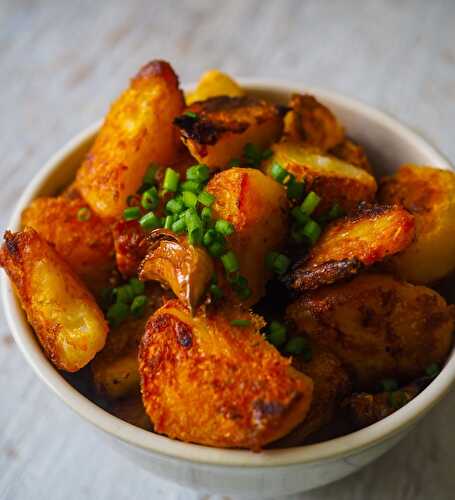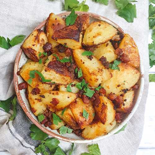 Jazz up your boring roast potatoes with mustard and crispy bacon bits! These mustard crusted roast potatoes are something a little different!