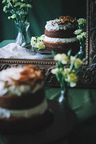 Low carb grapefruit cake is lightly spiced with ginger and clove, then finished with a mascarpone and grapefruit whipped cream frosting.