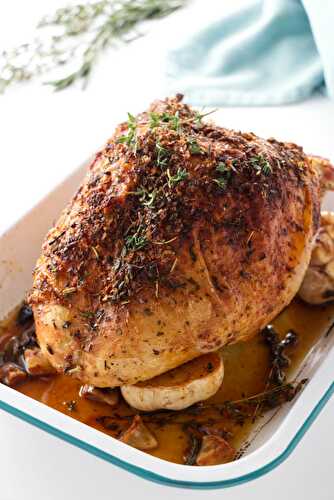 Our oven Roasted turkey breast with garlic herb butter is tender and juicy and the perfect size for a small Thanksgiving dinner.