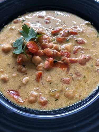 Try something different for your chickpea soup! This is a perfect comforting protein-rich winter soup made with red onions, tofu, jerusaleme artichokes, chickpea, turmeric, ginger, and a handful of fresh herbs.
