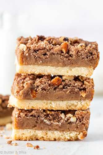 Smooth cinnamon caramel is the star in these Cinnamon Caramel Nut and Crumble Bars.