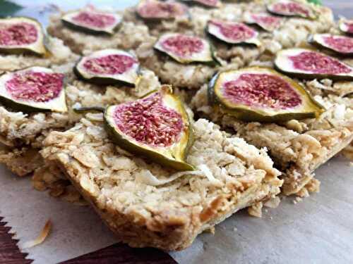 Coconut Fig Crumble Bars are so easy and delicious! These bars have fig jam (fresh or store-bought), coconut flakes, and a crumbly oatmeal topping that melts in your mouth.