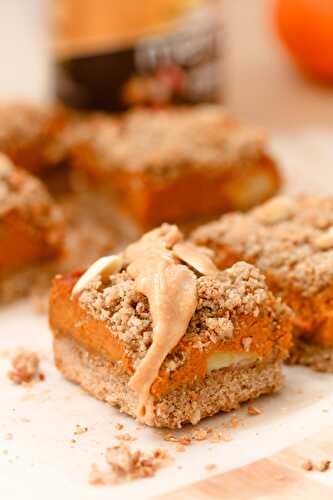 This easy Pumpkin & Peanut Butter Crumble bars with their crunchy base and creamy middle layer will keep you warm and satisfy this autumn.