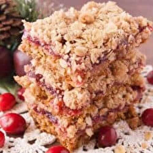 These cranberry crumble bars are quick, easy and great for sharing! You'll love their oatmeal cookie bottom, sweet cranberry filling and crumbly top!
